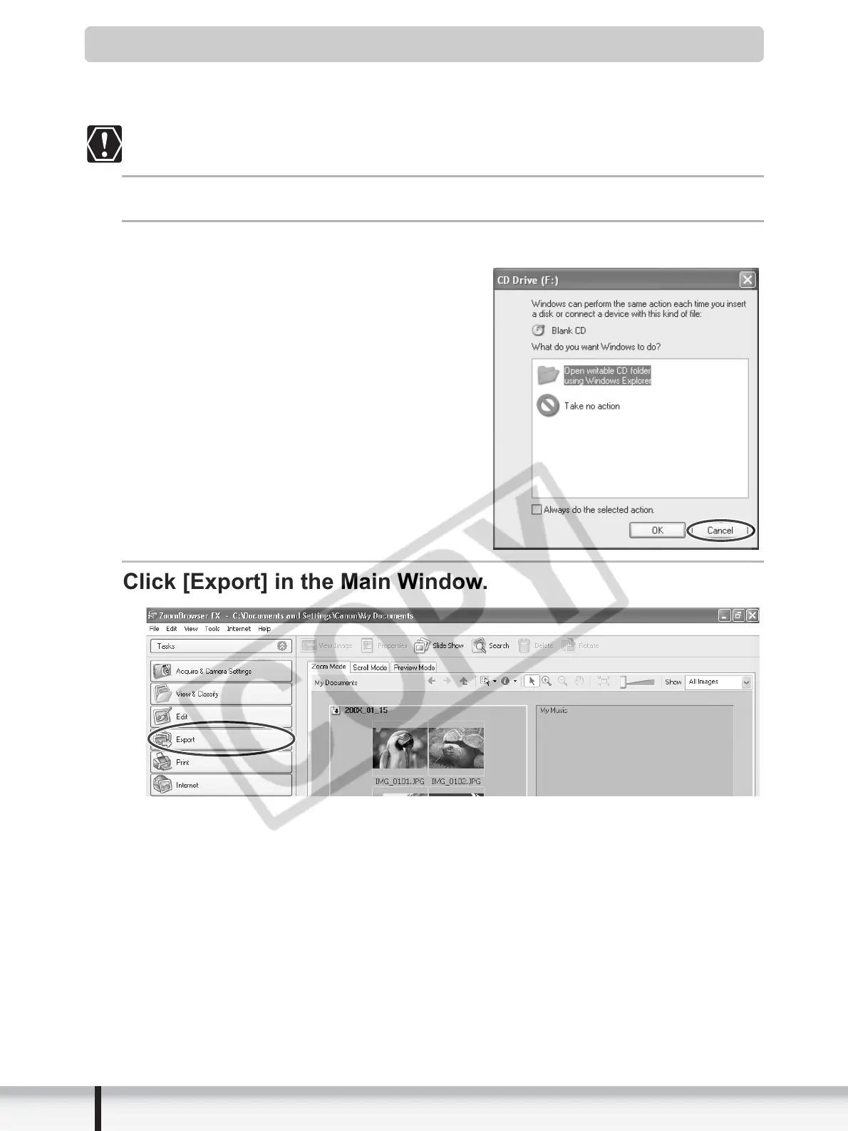 If the following window appears, click [Cancel].