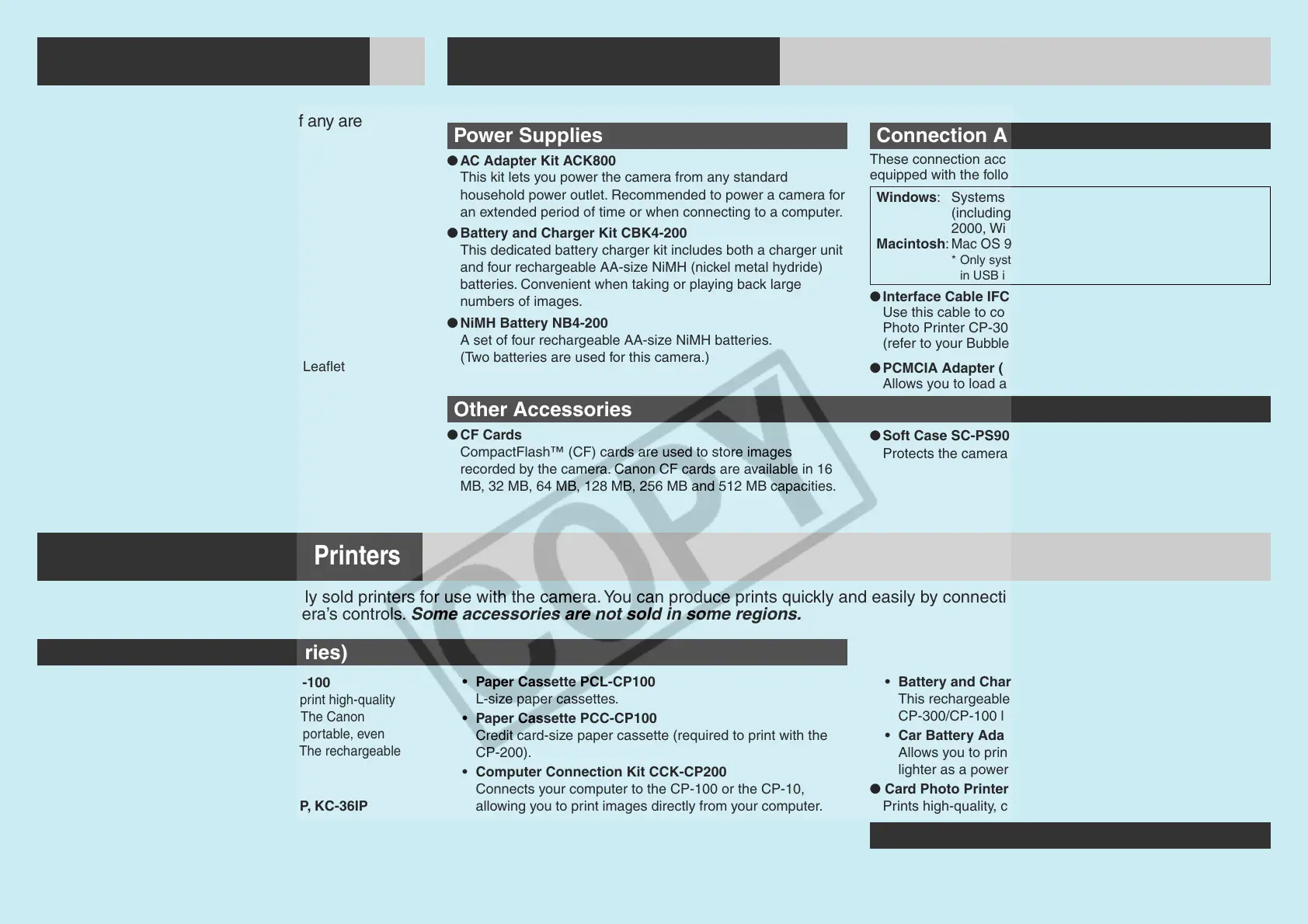 Canon offers the following separately sold printers for use with the camera. You can produce prints quickly and easily by connecting them to the camera with a