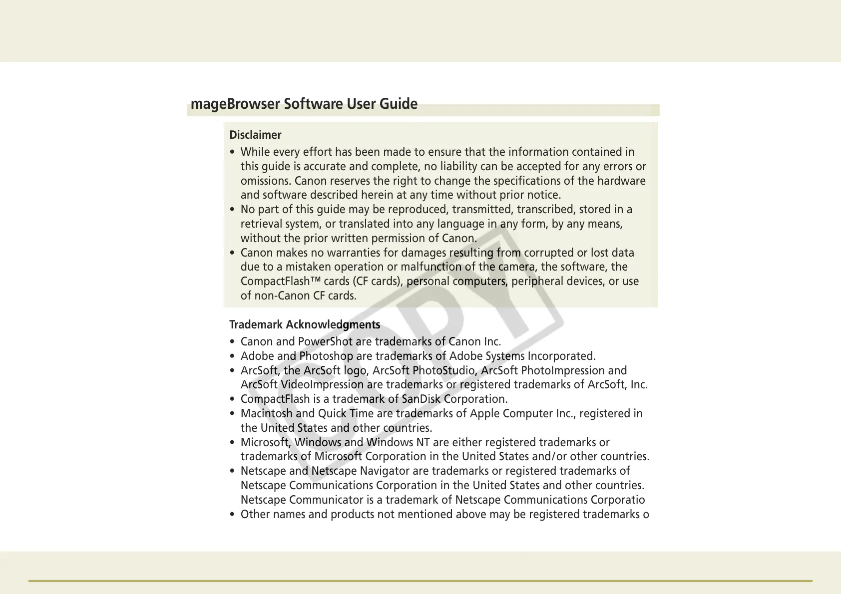 • Canon makes no warranties for damages resulting from corrupted or lost data