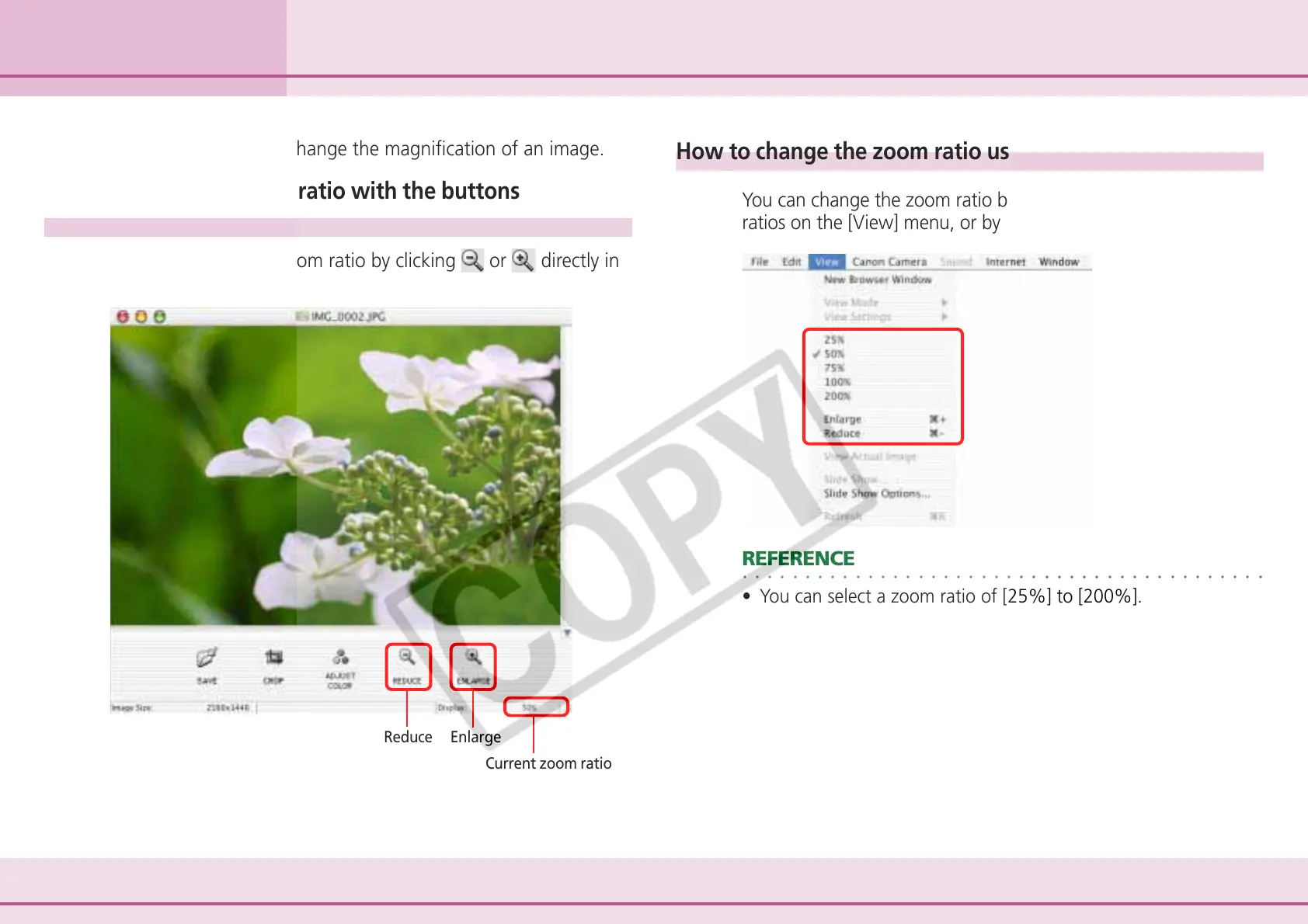 ratios on the [View] menu, or by clicking [Enlarge] or [Reduce].