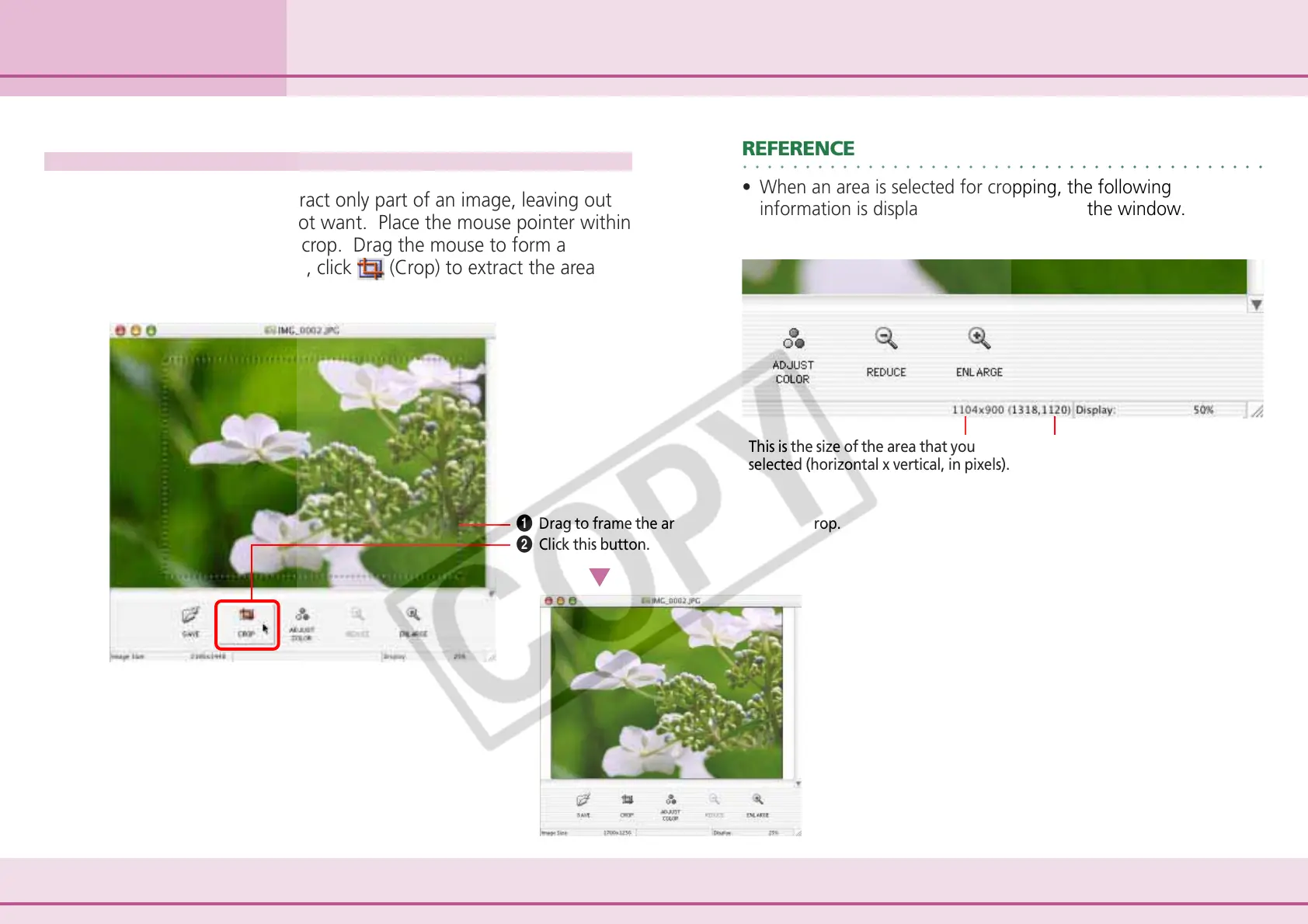 • When an area is selected for cropping, the following