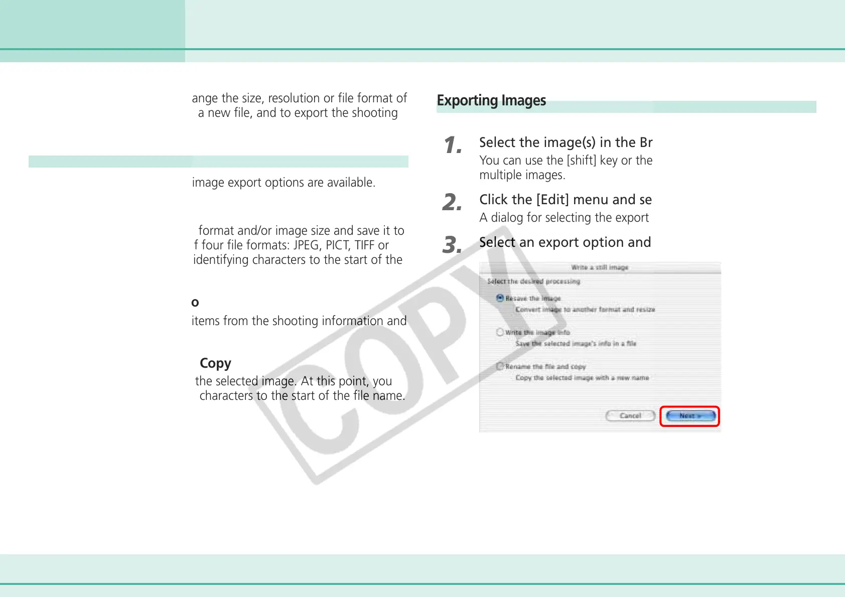 a new file. Select one of four file formats: JPEG, PICT, TIFF or