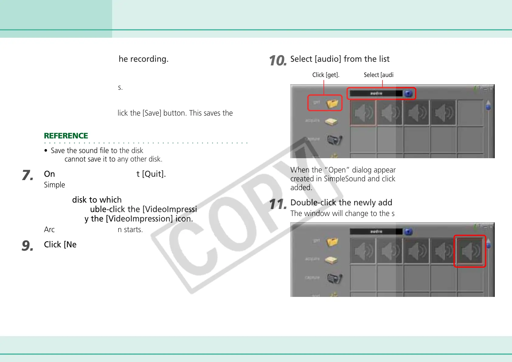 Click [get]. Select [audio].