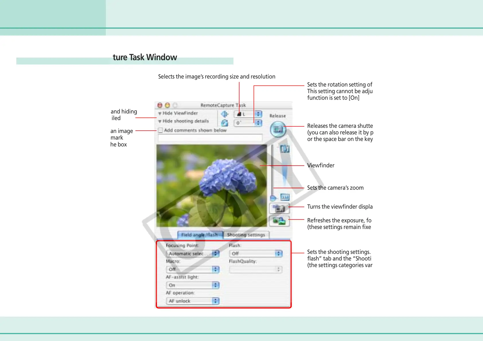 Features of the RemoteCapture Task Window