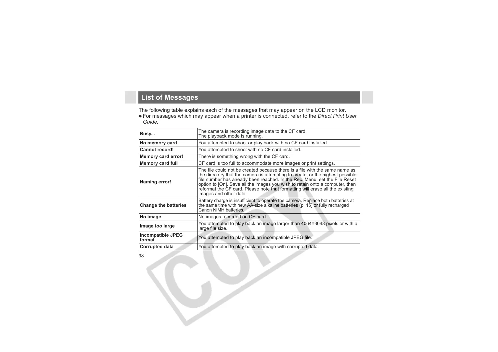 z For messages which may appear when a printer is connected, refer to the Direct Print User