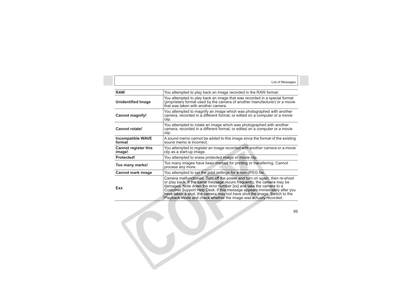 RAW You attempted to play back an image recorded in the RAW format.