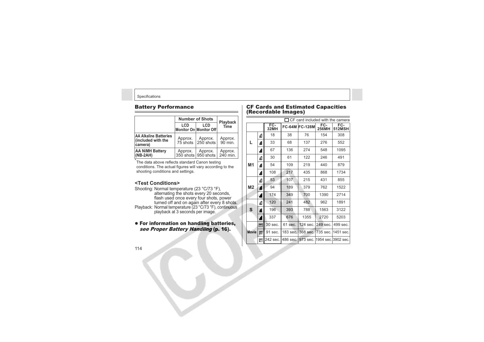The data above reflects standard Canon testing