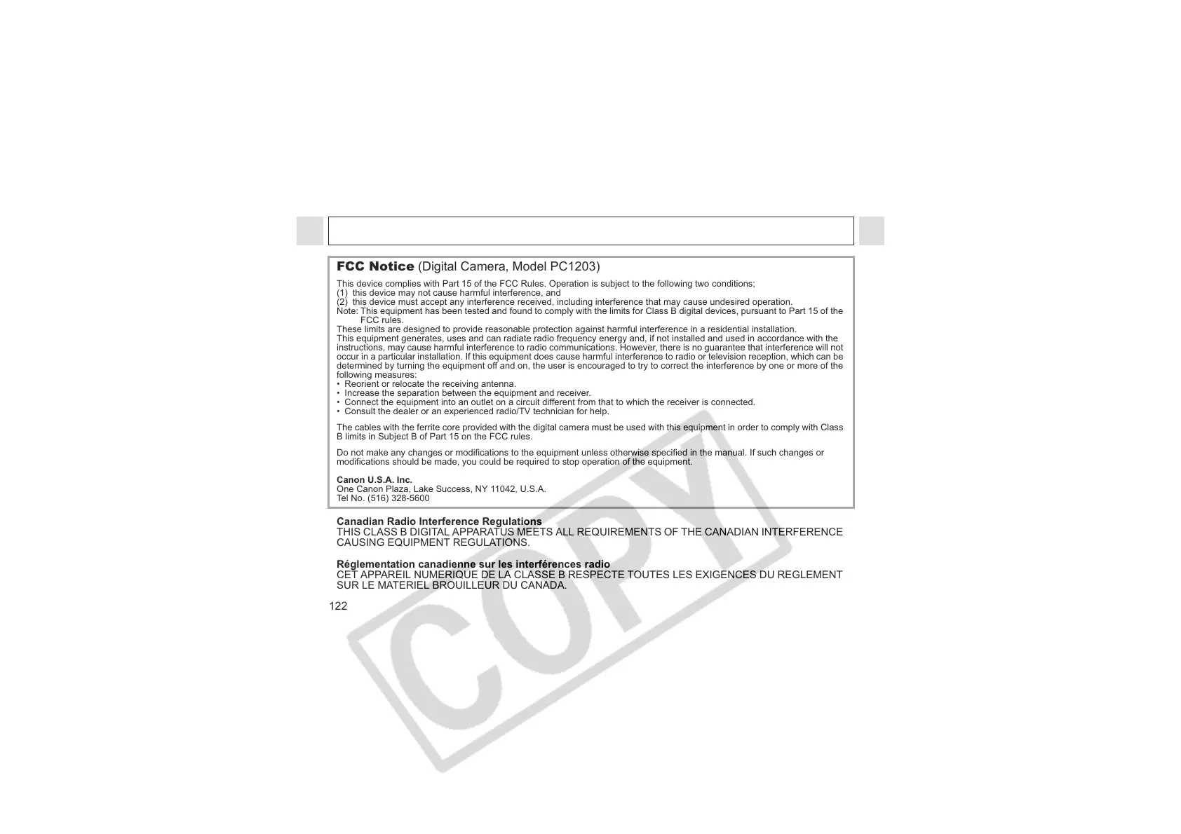 FCC Notice (Digital Camera, Model PC1203)