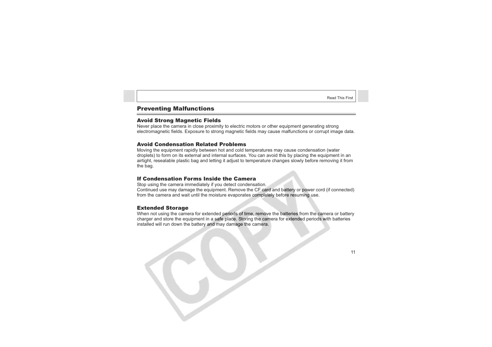 electromagnetic fields. Exposure to strong magnetic fields may cause malfunctions or corrupt image data.