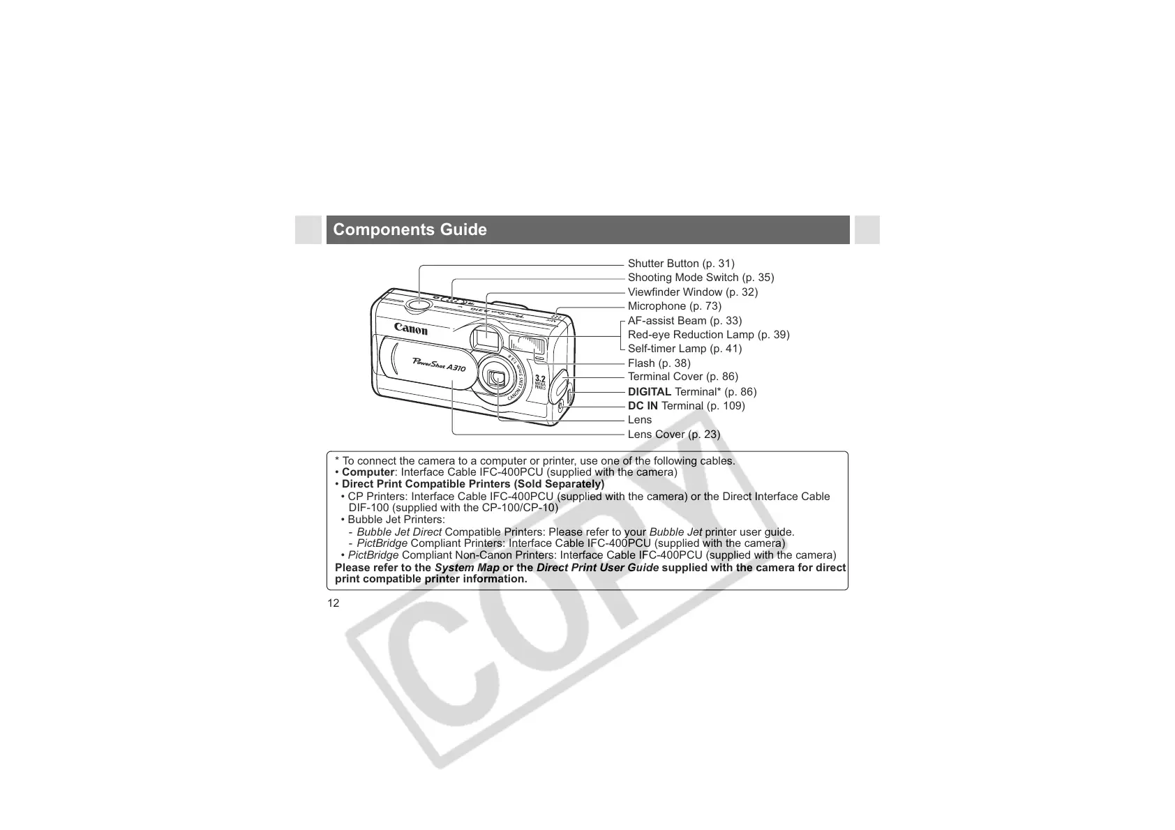 • PictBridge Compliant Non-Canon Printers: Interface Cable IFC-400PCU (supplied with the camera)