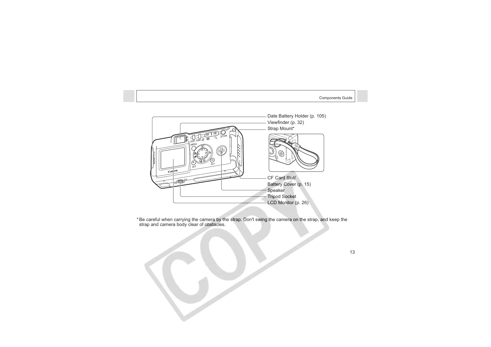 * Be careful when carrying the camera by the strap. Don't swing the camera on the strap, and keep the