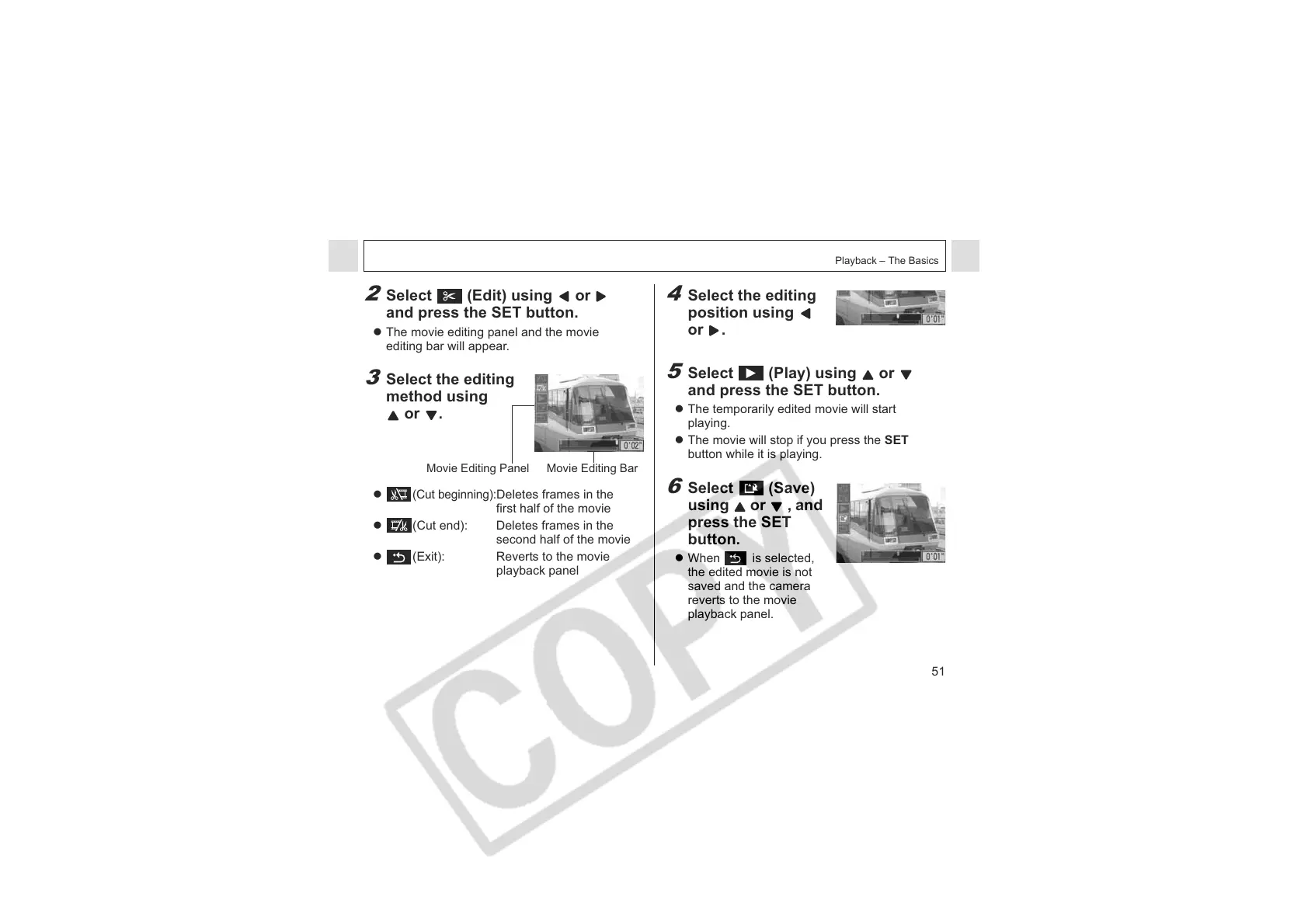 Movie Editing Panel Movie Editing Bar