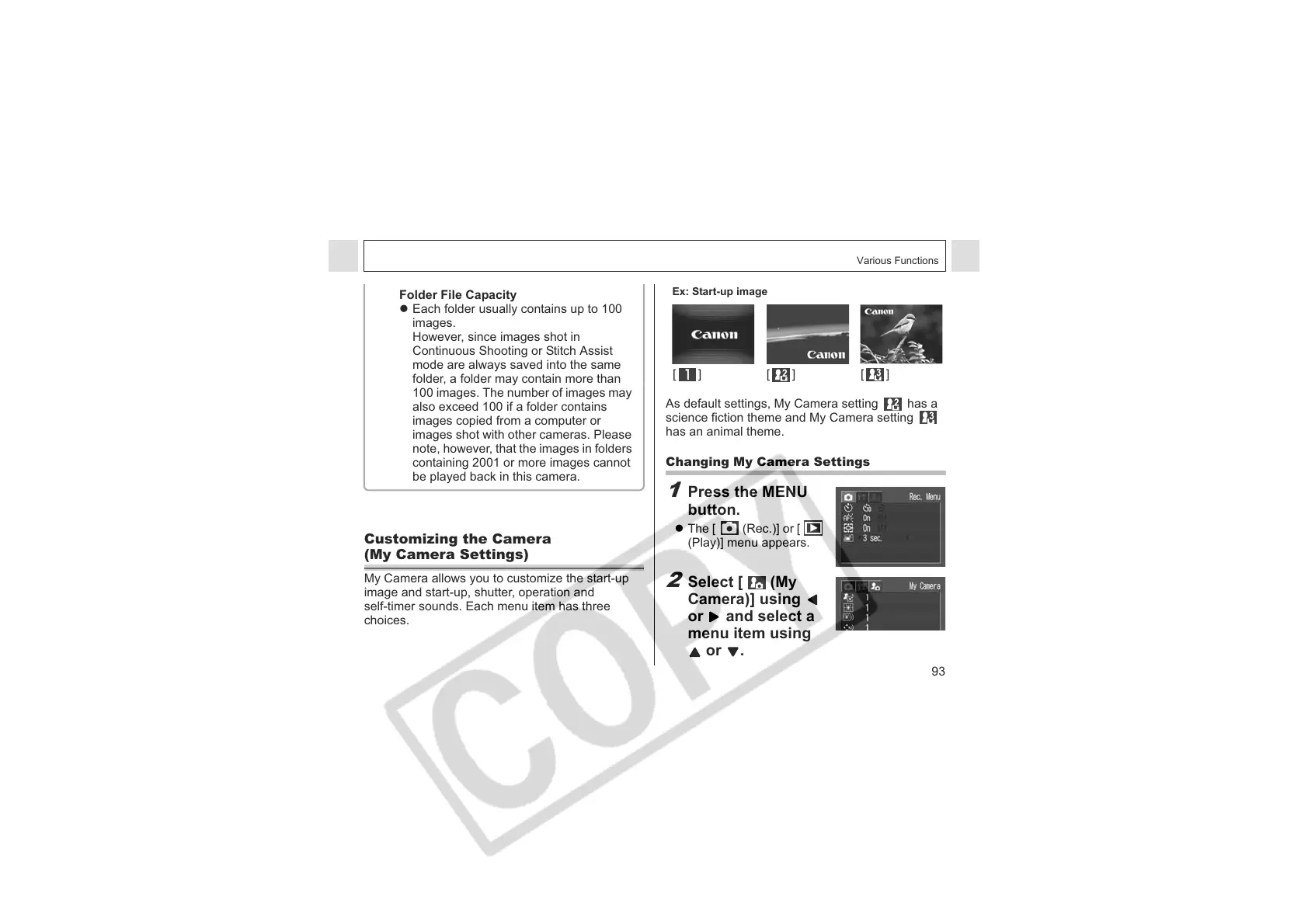 As default settings, My Camera setting has a