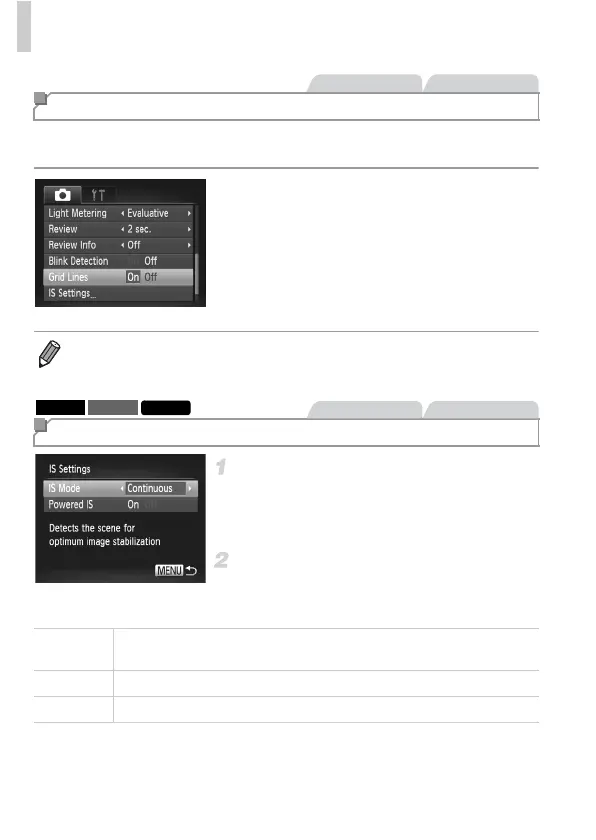 Shoot Only* Image stabilization is active only at the moment of shooting.
