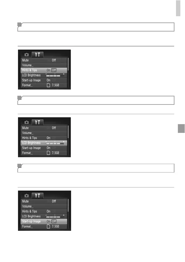 Hints and tips are normally shown when you choose FUNC. menu (p. 50)