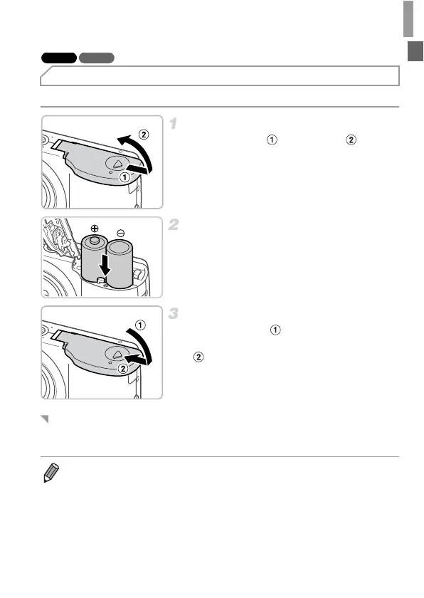 Use AA alkaline batteries or Canon AA NiMH batteries (sold separately,