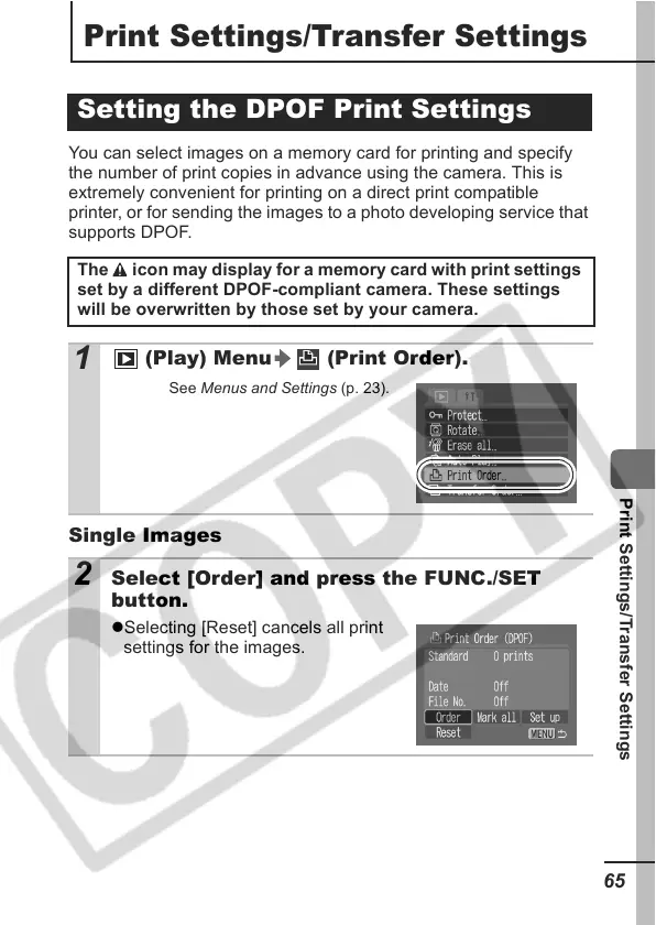 set by a different DPOF-compliant camera. These settings