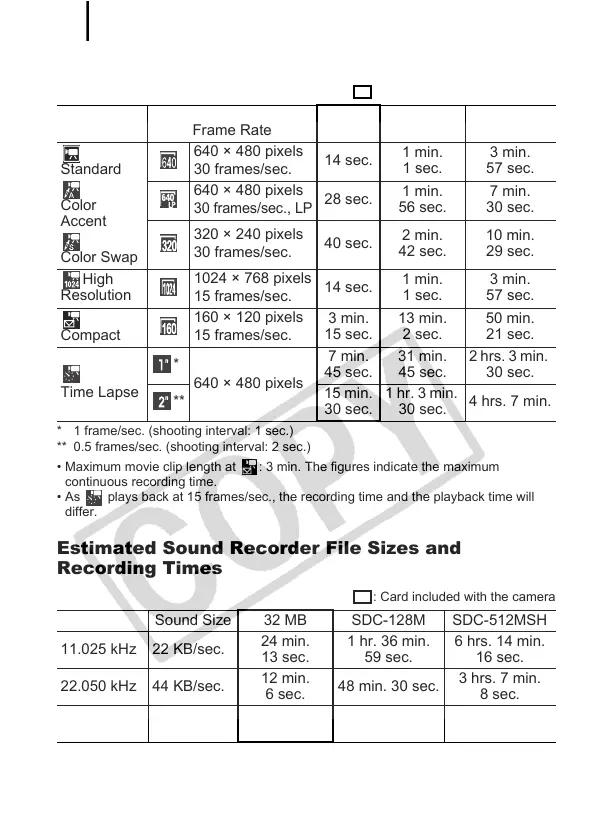 • As plays back at 15 frames/sec., the recording time and the playback time will
