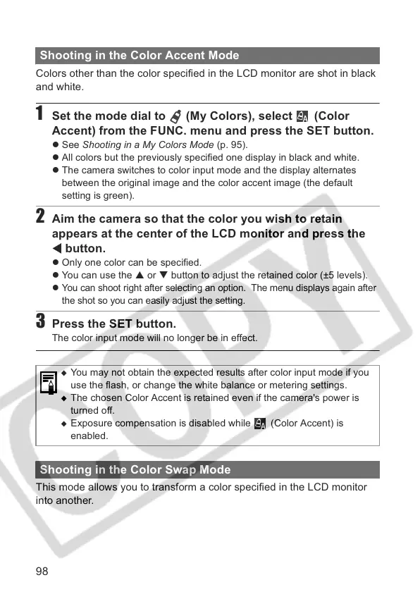z You can use the S or T button to adjust the retained color (±5 levels).