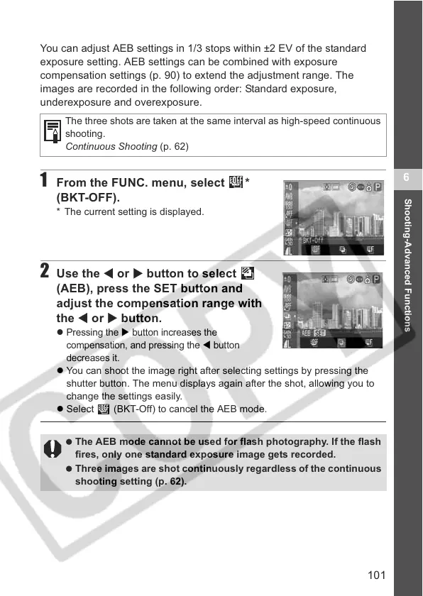 exposure setting. AEB settings can be combined with exposure
