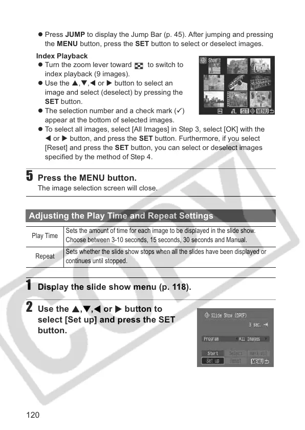 1 Display the slide show menu (p. 118).