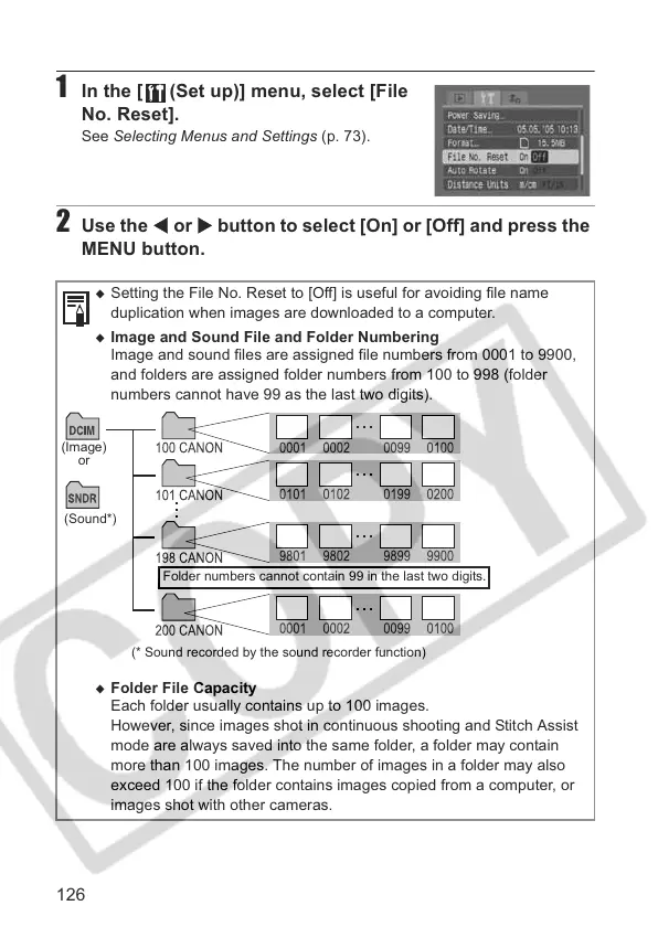 Setting the File No. Reset to [Off] is useful for avoiding file name