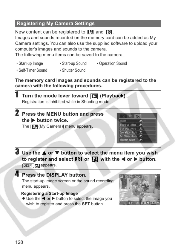 The memory card images and sounds can be registered to the