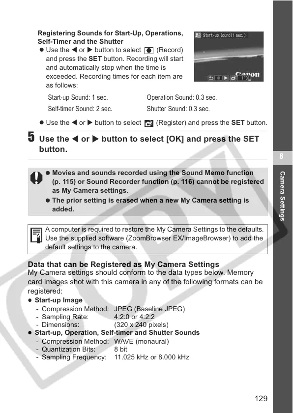 z The prior setting is erased when a new My Camera setting is