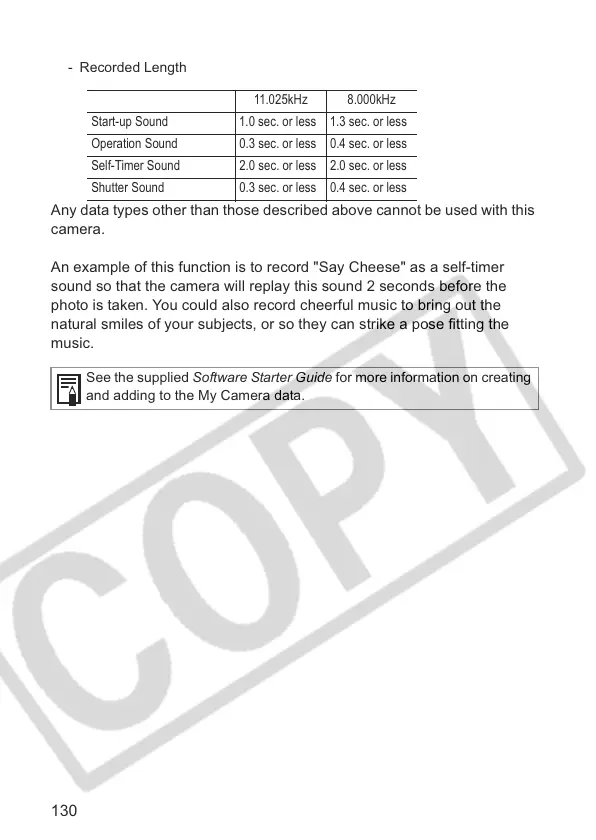 Self-Timer Sound 2.0 sec. or less 2.0 sec. or less