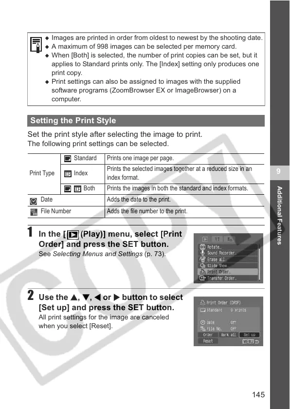 applies to Standard prints only. The [Index] setting only produces one