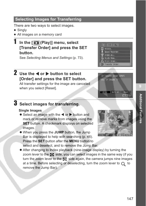 at a time. Before selecting or deselecting, turn the zoom lever to to