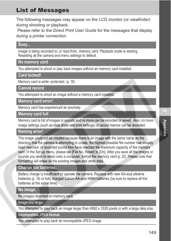 Memory card is full of images or sounds and no more can be recorded or saved. Also, no more