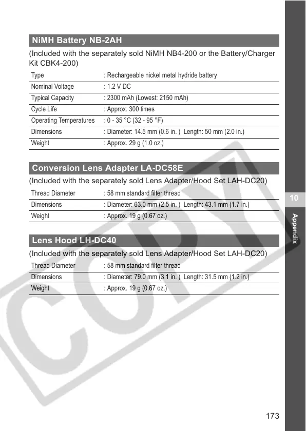 (Included with the separately sold NiMH NB4-200 or the Battery/Charger