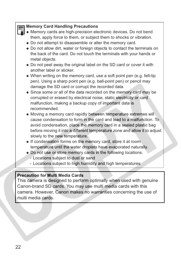 If condensation forms on the memory card, store it at room