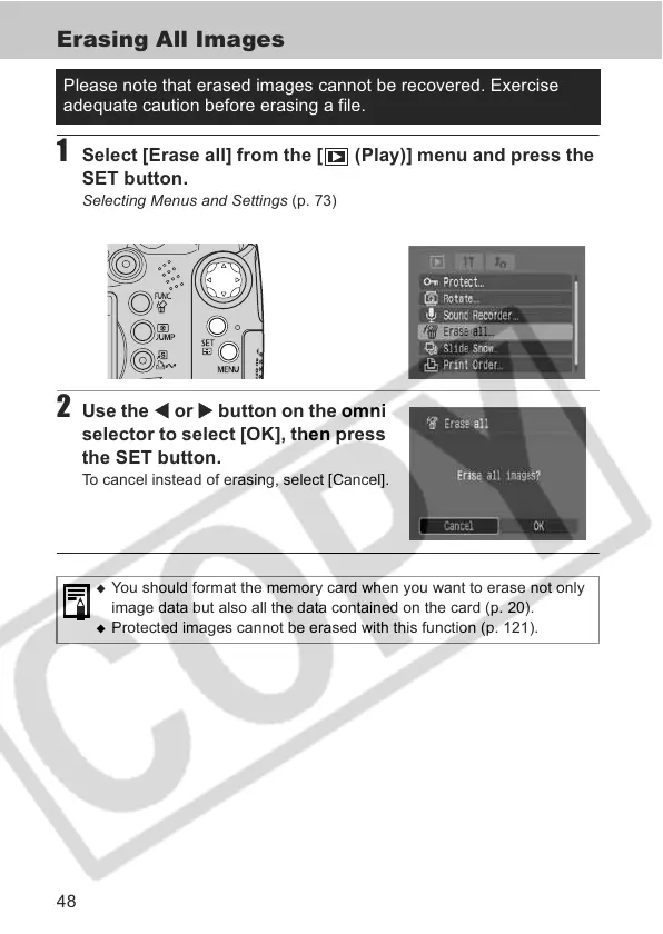 1 Select [Erase all] from the [ (Play)] menu and press the