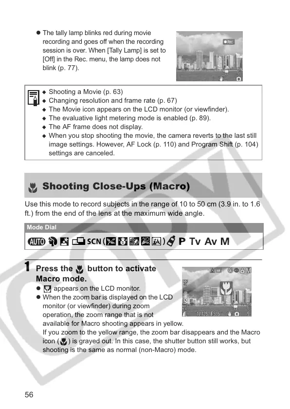 Use this mode to record subjects in the range of 10 to 50 cm (3.9 in. to 1.6