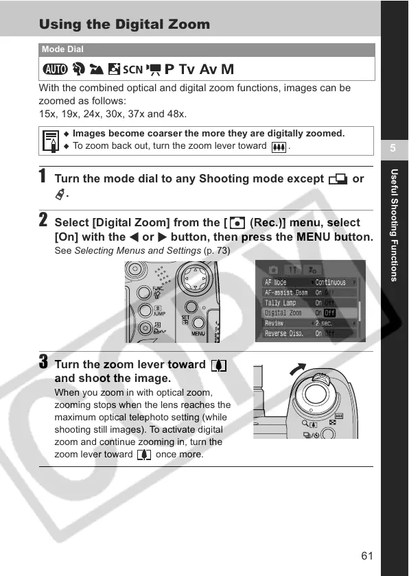 2 Select [Digital Zoom] from the [ (Rec.)] menu, select