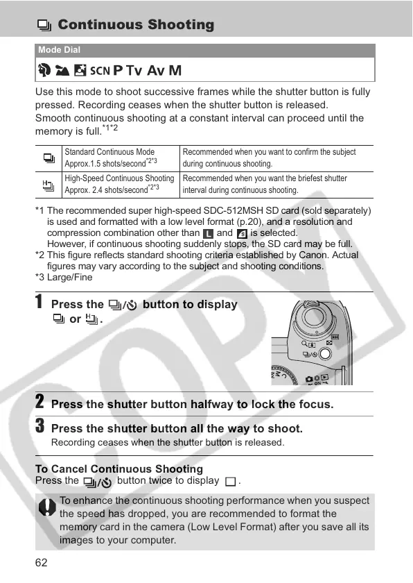 However, if continuous shooting suddenly stops, the SD card may be full.