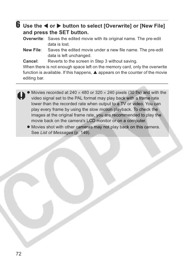 Overwrite: Saves the edited movie with its original name. The pre-edit