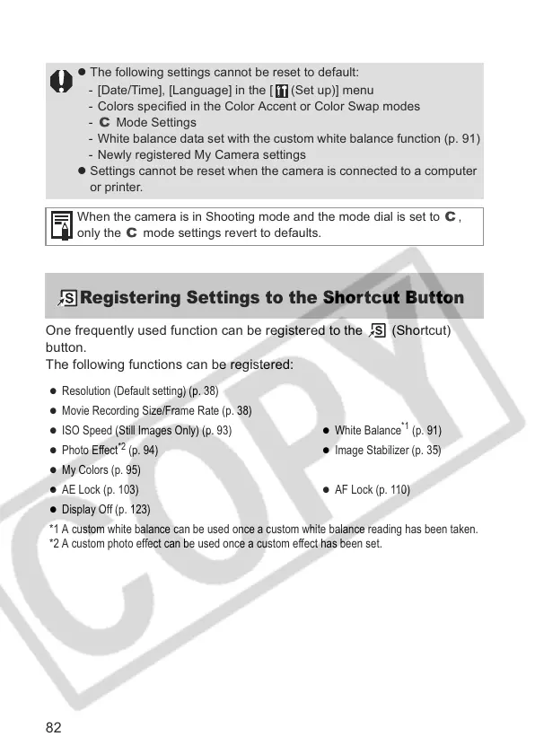 *1 A custom white balance can be used once a custom white balance reading has been taken.