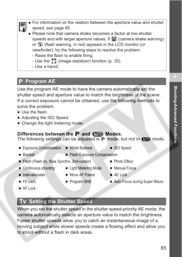 When you set the shutter speed in the shutter speed-priority AE mode, the