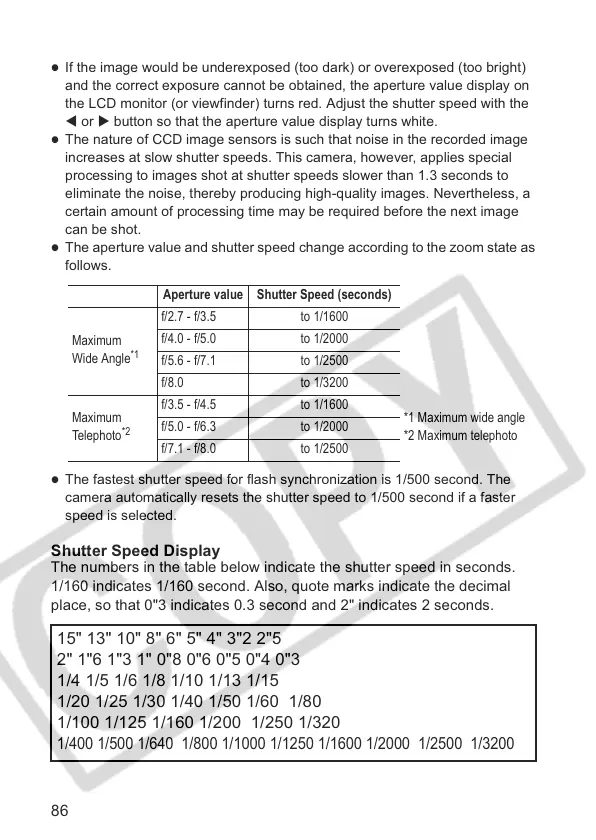 the LCD monitor (or viewfinder) turns red. Adjust the shutter speed with the