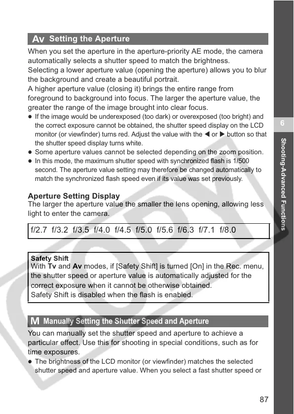 Manually Setting the Shutter Speed and Aperture