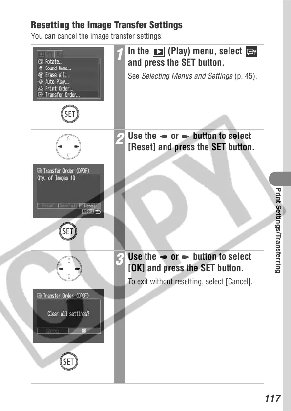 Resetting the Image Transfer Settings