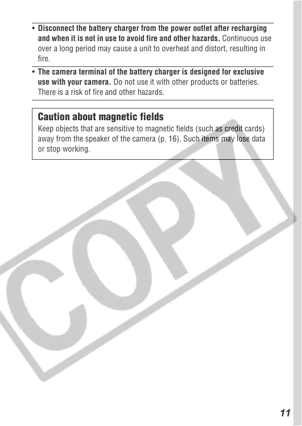 Keep objects that are sensitive to magnetic fields (such as credit cards)