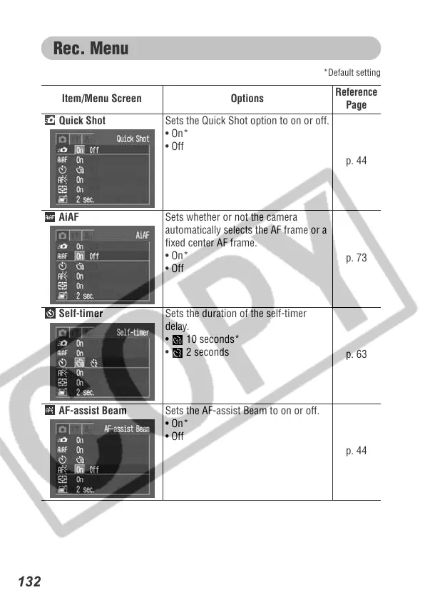 Quick Shot Sets the Quick Shot option to on or off.