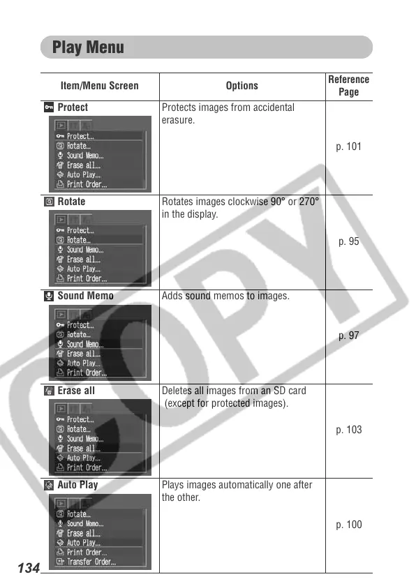 Protect Protects images from accidental