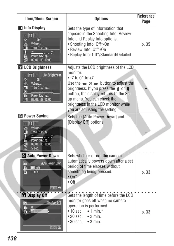 Auto Power Down Sets whether or not the camera