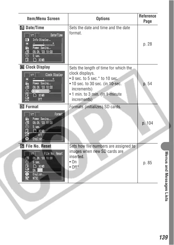 Date/Time Sets the date and time and the date