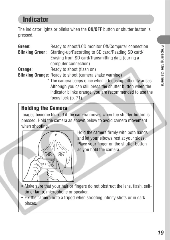 The indicator lights or blinks when the ON/OFF button or shutter button is